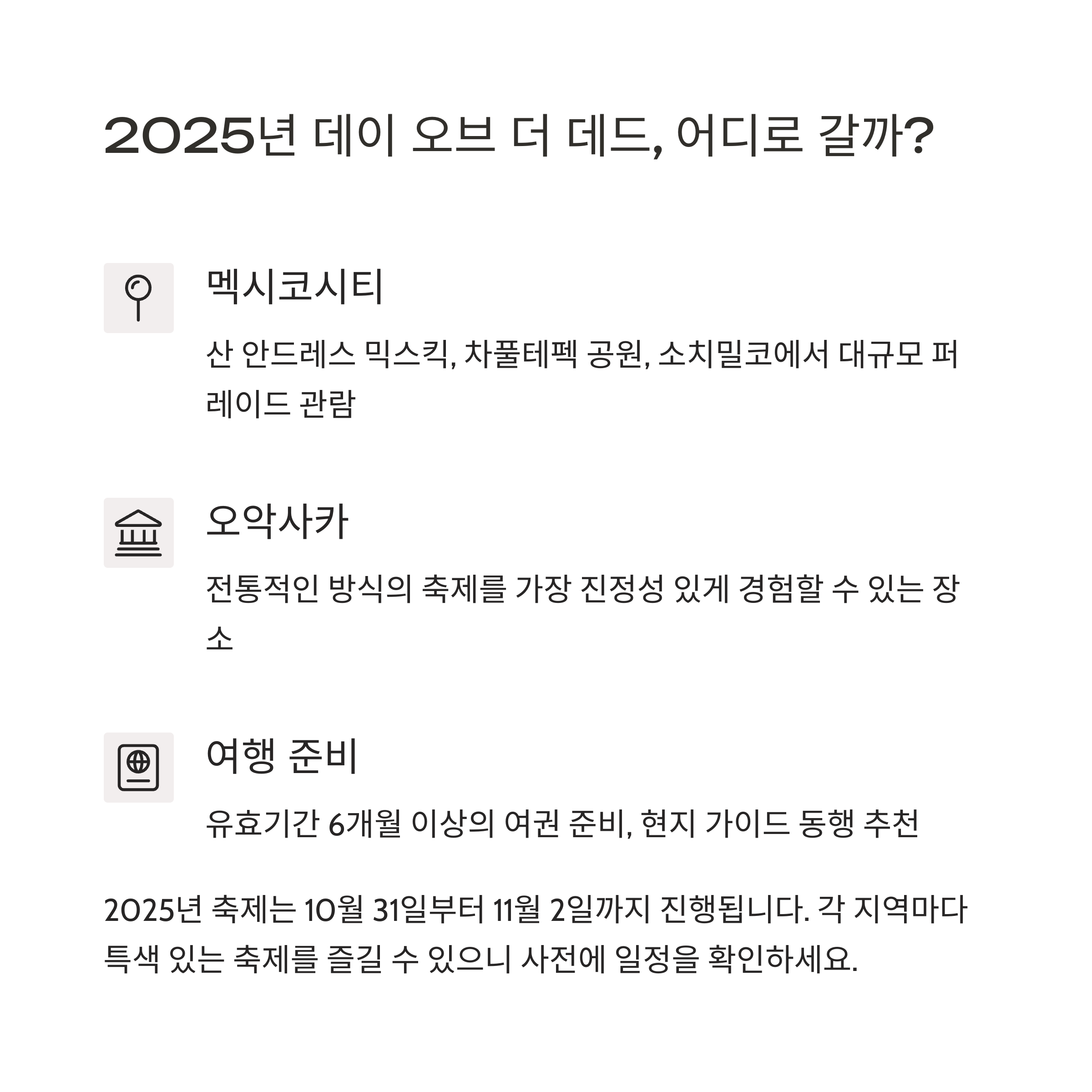 2025년 데이 오브 더 데드는 멕시코의 오랜 전통과 현대 문화가 어우러진 특별한 축제입니다.
