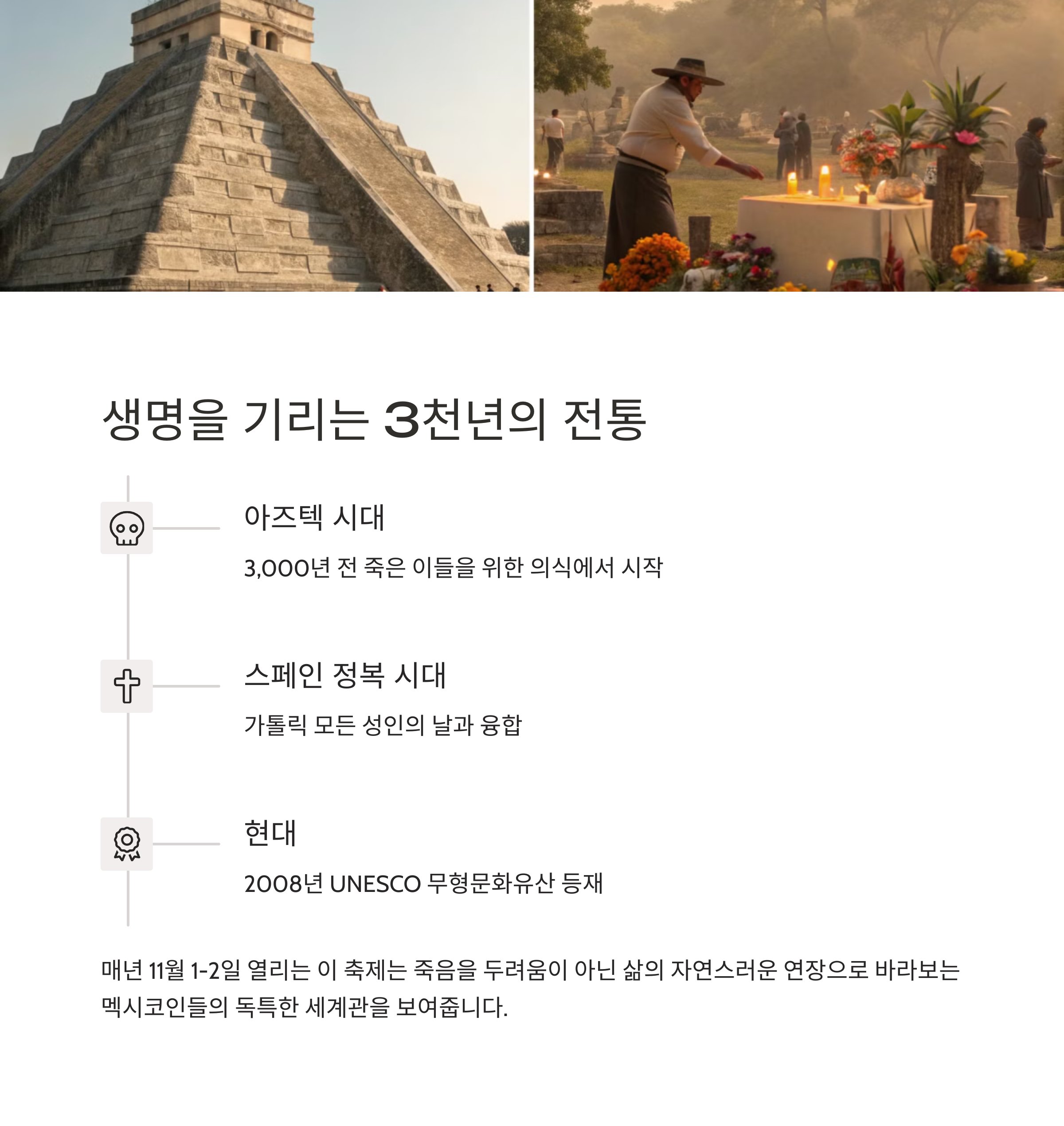 데이 오브 더 데드는 단순한 축제를 넘어 삶과 죽음을 연결하는 역사적인 의식입니다.