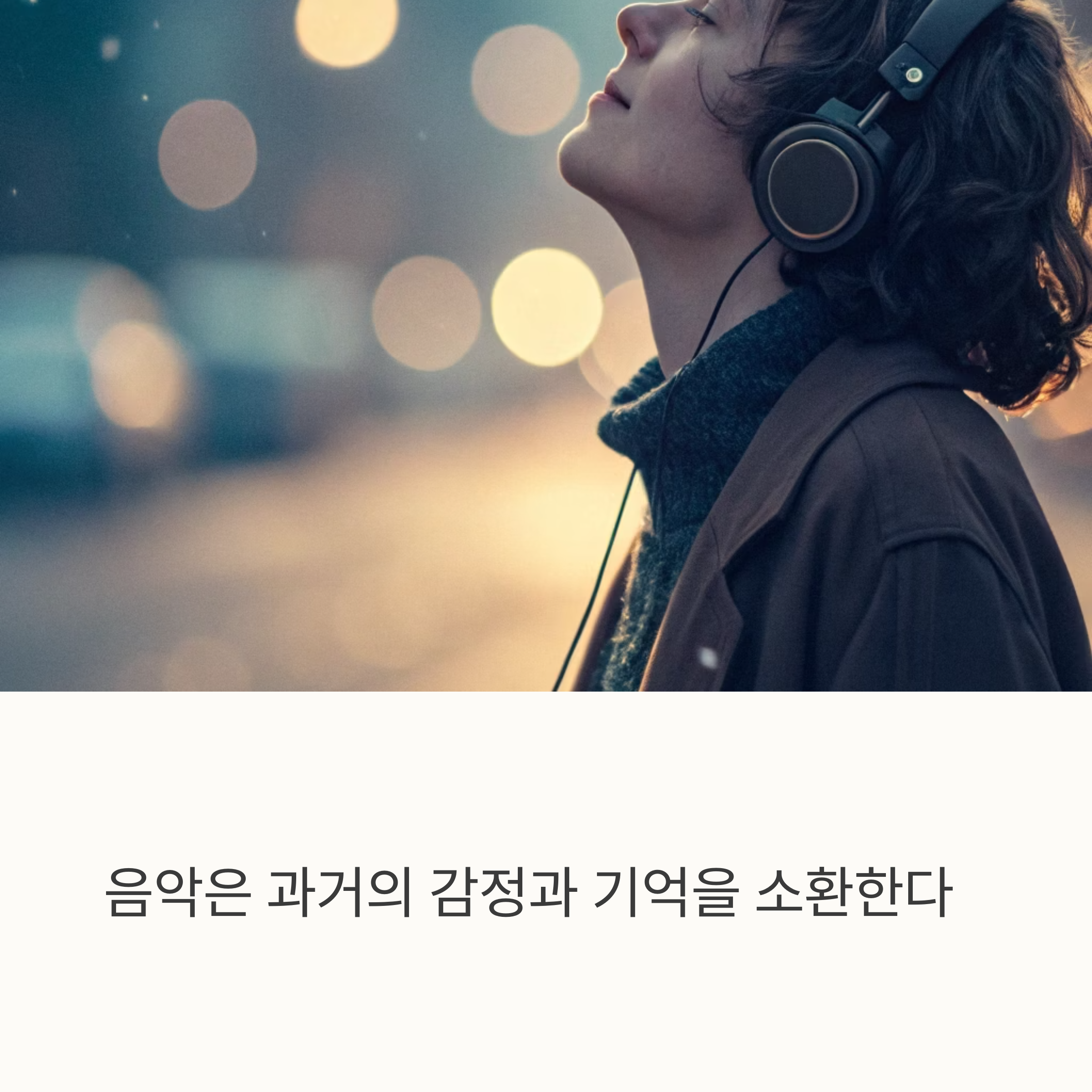 - 음악은 특정한 기억이나 감정을 떠올리게 하며, 심리적 치유와 자기 이해를 돕습니다.