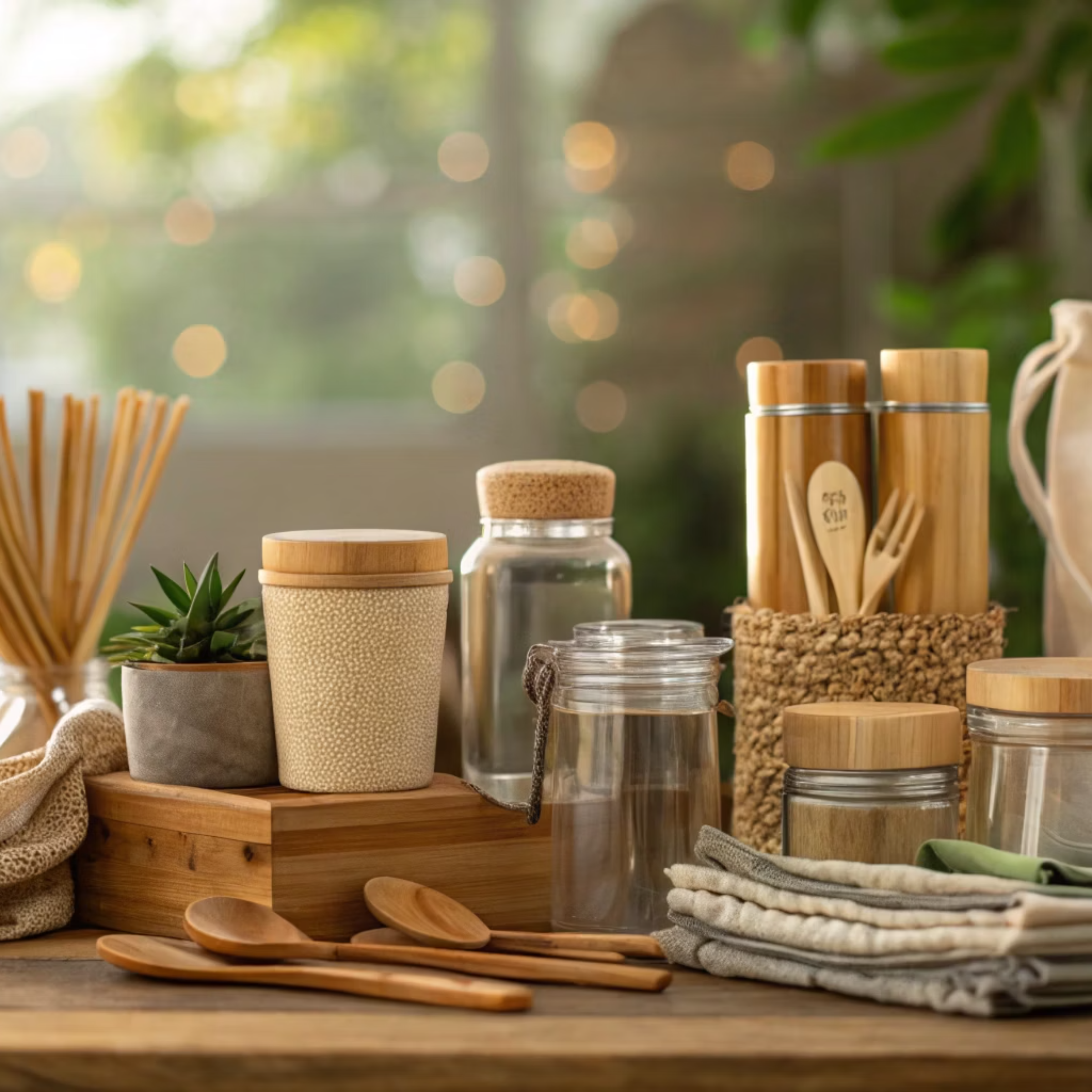 - 텀블러, 에코백, 천연비누, 생분해 칫솔, 대나무 칫솔, 리필스테이션 제품(샴푸, 세제, 화장품 등).