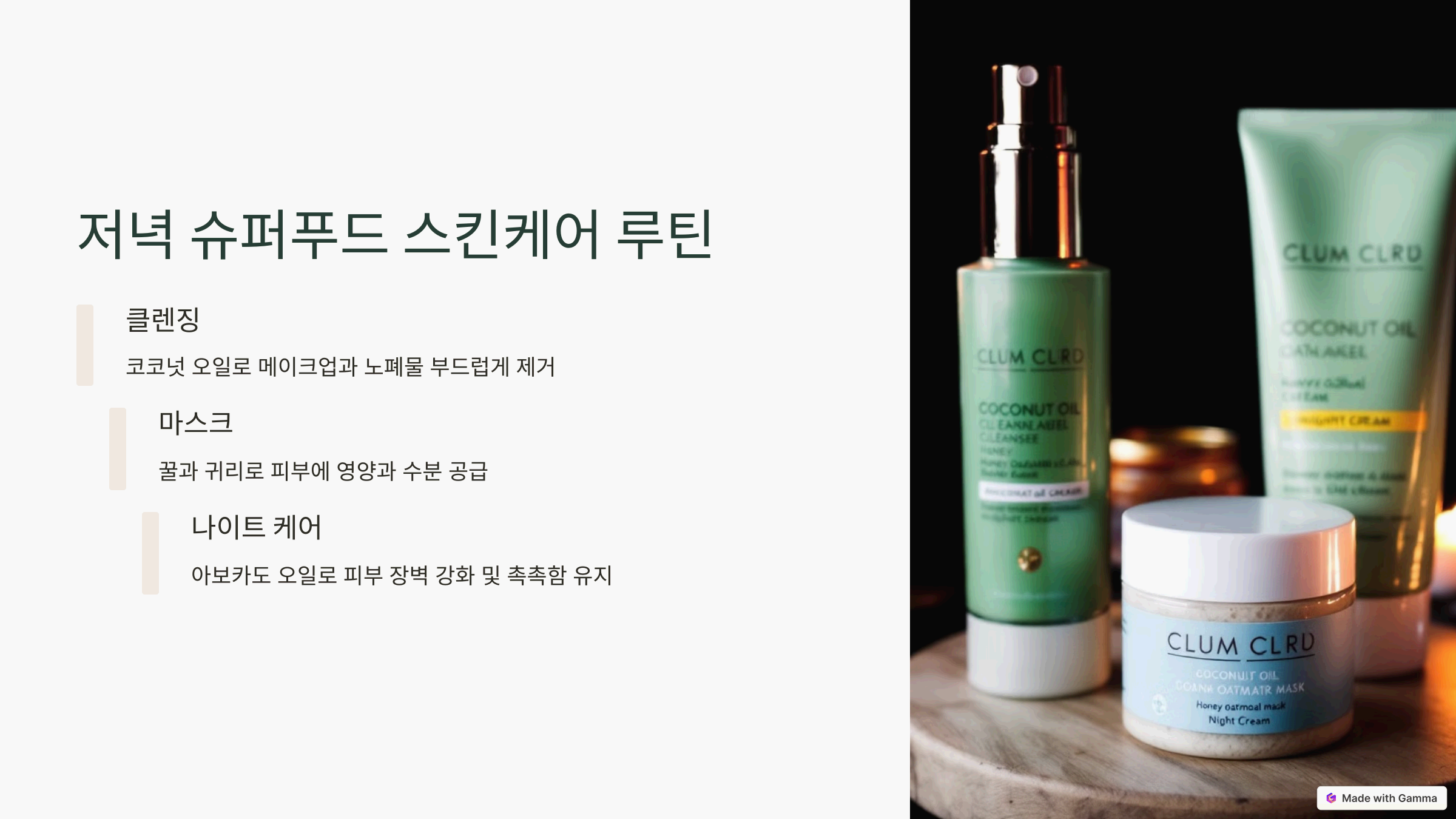 슈퍼푸드를 활용한 스킨케어 루틴은 자연스럽게 빛나는 피부를 만드는 최고의 방법이죠.
