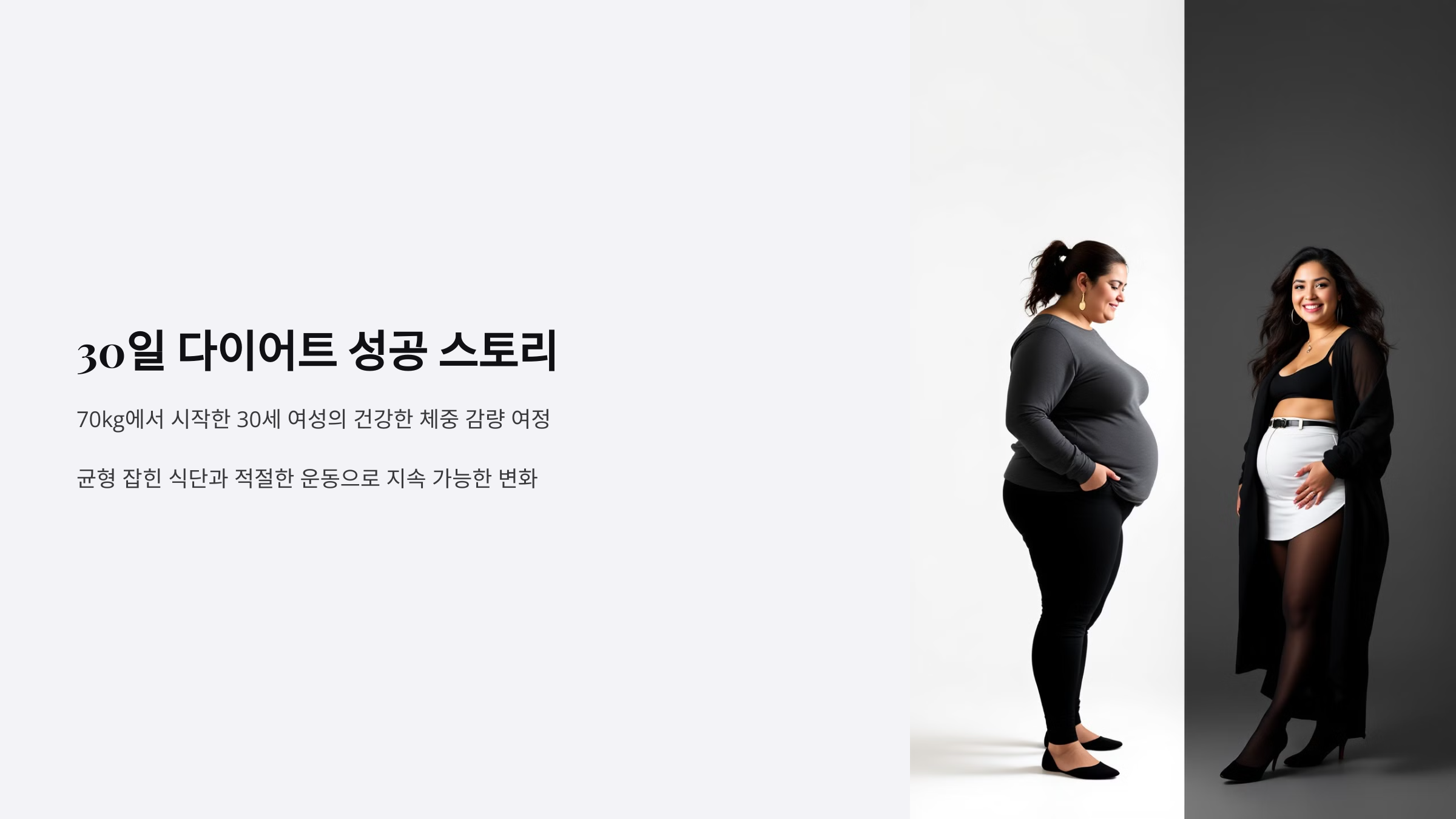 이렇게 30일 동안 꾸준히 노력한 결과, A씨는 단순한 체중 감량을 넘어 건강한 생활 습관을 갖게 되었습니다.
