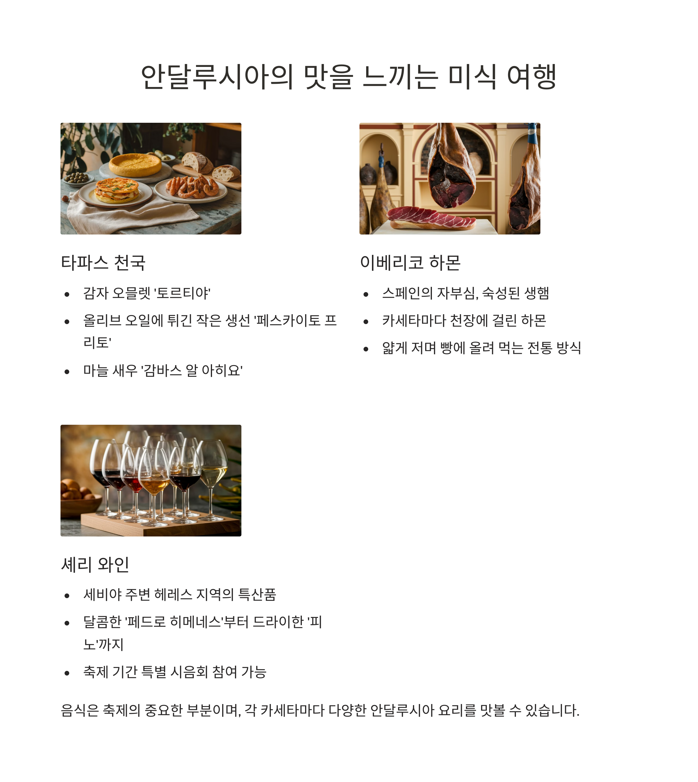 | 플라멩코 공연 | 춤과 음악 | 열정적이고 화려함 |